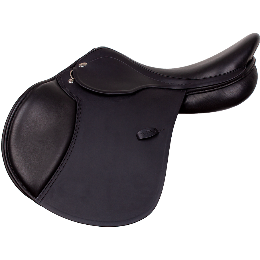 Anatomically pre-shaped flaps and medium knee blocks support correct leg alignment without restricting movement. Finished with anti-slip calf leather on the seat and knee rolls, the saddle delivers excellent grip and rider stability.